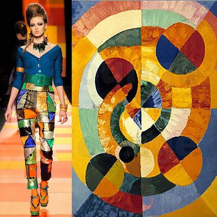 圆形为主的画作,到了jean paul gaultier的秀场就变成三角为主,若不是颜色相似,也许还真找不到之间的关联。