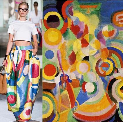 不难看出来dsquared2 秀场上这套look卖点就在裙子上,直接pia一下,把robert delaunay的画作印上面了,大家可以忽略上面的超短装,因为满大街都有卖的。
